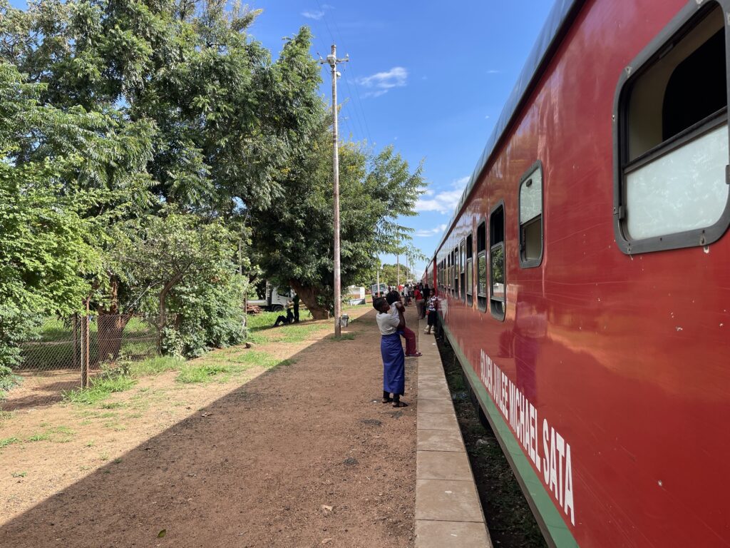 Am 30.12.2024 ging es für uns wieder weiter. Der Plan war es mit dem Zug von Livingstone bis nach Lusaka zu fahren. Am Nachmittag hatten wir unsere Tickets gekauft: First class sleeper für umgerechnet 10€ pro Person. Wir waren ein bisschen aufgeregt es war aber eher ein schönes aufgeregt sein. Wir sind auf unserer Reise ja noch nie Zug gefahren. Ich hatte mich sehr gefreut, da man im Zug ja auch ein bisschen laufen, aus dem Fenster schauen oder mal aussteigen kann. Und dieser Zug sollte ja schon sehr anders werden als Züge in Europa.