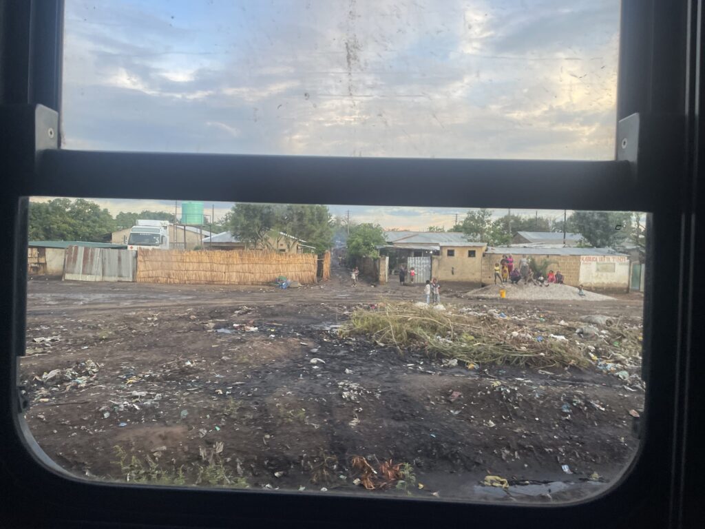 Am nächsten Morgen wurde uns eins klar: Irgendwas stimmt nicht. Wir haben auf Google Maps erst die Hälfte geschafft und sollte man die Zeit jetzt verdoppeln, dann wird es knapp, dass wir rechtzeitig ankommen. So wurde aus 14:30 Ankunft in Lusaka in unserem Kopf 16:00. Nach und nach 17, 18, 19, 20 Uhr. Wir hatten eigentlich gedacht, dass wir dann den Abend schön zusammen verbringen können; im Hostel sitzen, unser Jahr Revue passieren lassen und vielleicht uns ein paar Sachen für das neue Jahr vornehmen. Und natürlich Silvester feiern. Der Abend wurde dann immer schlimmer. Wir haben uns immer weiter überlegt wie lange wir noch brauchen und was wir jetzt machen wollen. Wir waren so müde und fertig, dass wirklich alles schrecklich war. Jeder weitere unnötig lange Stop, jedes Mal wenn man aufs Klo wollte und alles eklig war. Wir hatten ja auch nicht essen für so lange mitgenommen, so wurde das Essen und Trinken auch noch immer knapper. Was auch noch besonders schlimm war, war der Geruch. Das Klo stank, der Gang stank, wegen dem ekligen Waschwasser und vor uns im Abteil war eine kranke Frau, die wirklich sehr, sehr unangenehm roch. Jedes Mal wenn die Tür von denen aufging und unsere auch offen war stank es. Manchmal kam auch noch ein ekliger Geruch von draußen herein. Viele Dörfer hatten ihre Mülldeponien quasi direkt an den Gleisen. Bei dem ganzen Gefühlen und dem Stress hatten wir uns auch noch so angezickt. Es wurde erst nachdem wir einmal Tränen vergossen und uns über alles aufgeregt hatten wirklich besser.